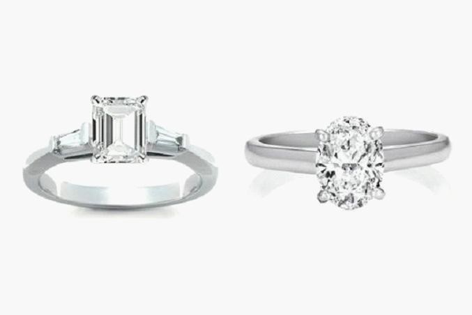 方钻与椭圆钻:圆形切割的钻戒是婚戒中最常有的,而方钻和椭圆形则不多见。