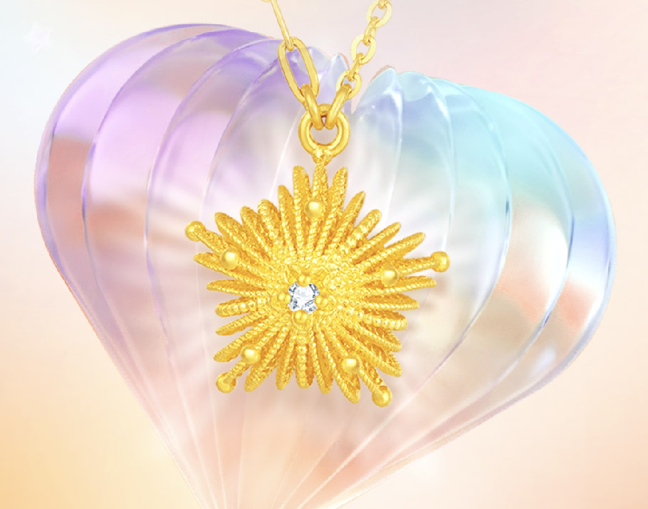 运用精密工艺于纯金之上精雕细琢,令黄金表面辉映钻石般璀璨光泽,并多维度立体再现
