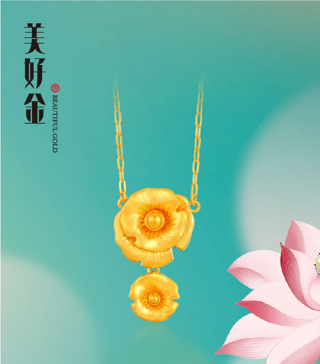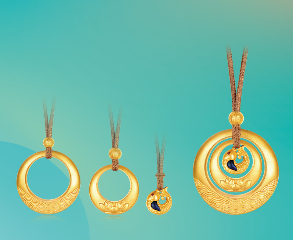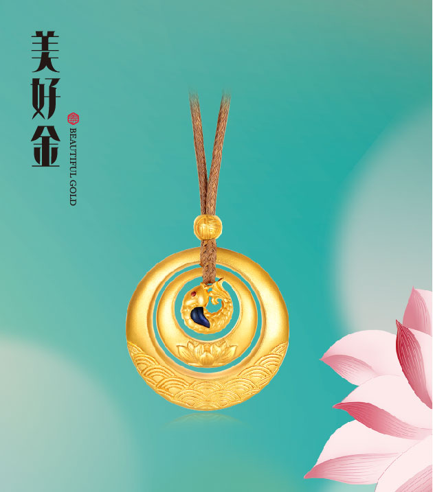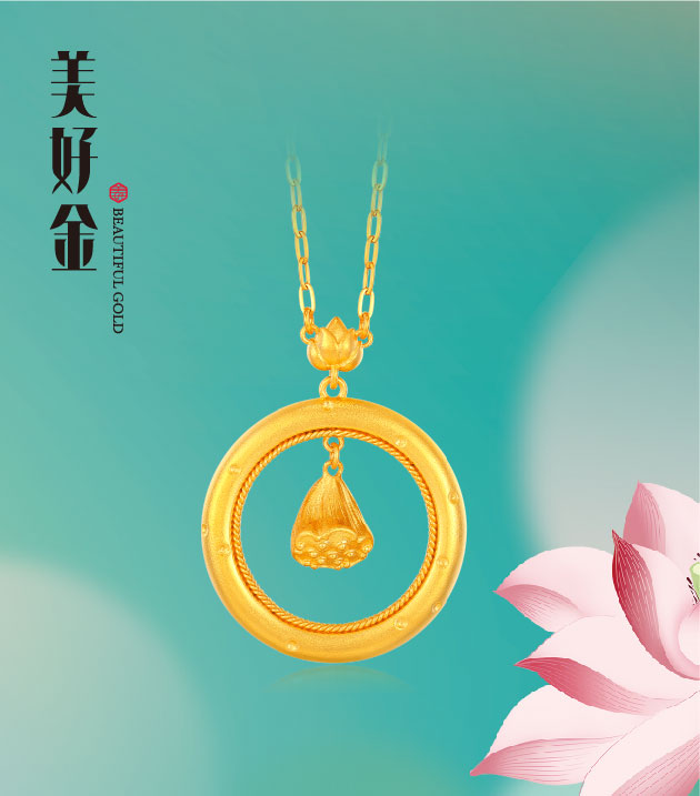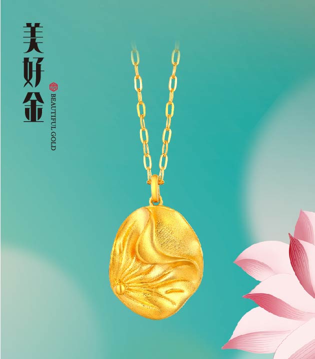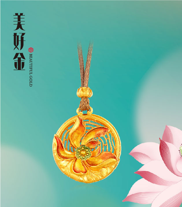 "美好有家"系列,撷取夏日荷塘胜景为灵感,匠心熔铸古法金国潮臻品。设计凝萃"荷花"、"荷叶"莲蓬"、"锦鲤"样瑞意象,传递和美祝福。"荷"形态简雅,意境深长,内蕴柔中带刚之风骨、动静相谐之妙韵,金饰凝铸承载,成就先永典藏,传续东方雅意。