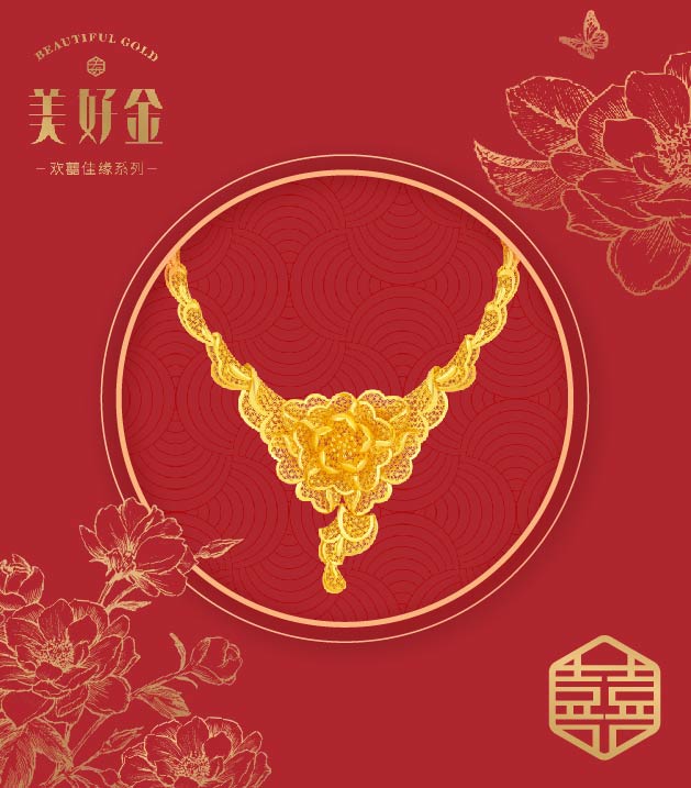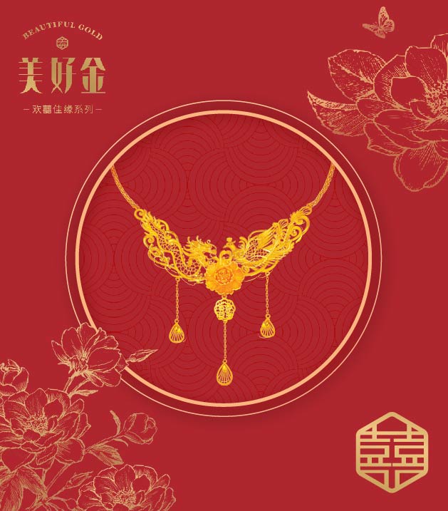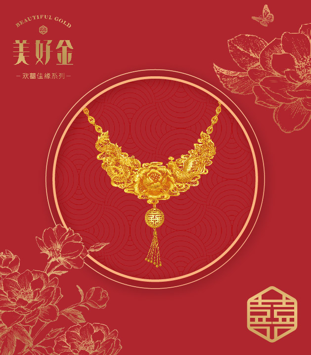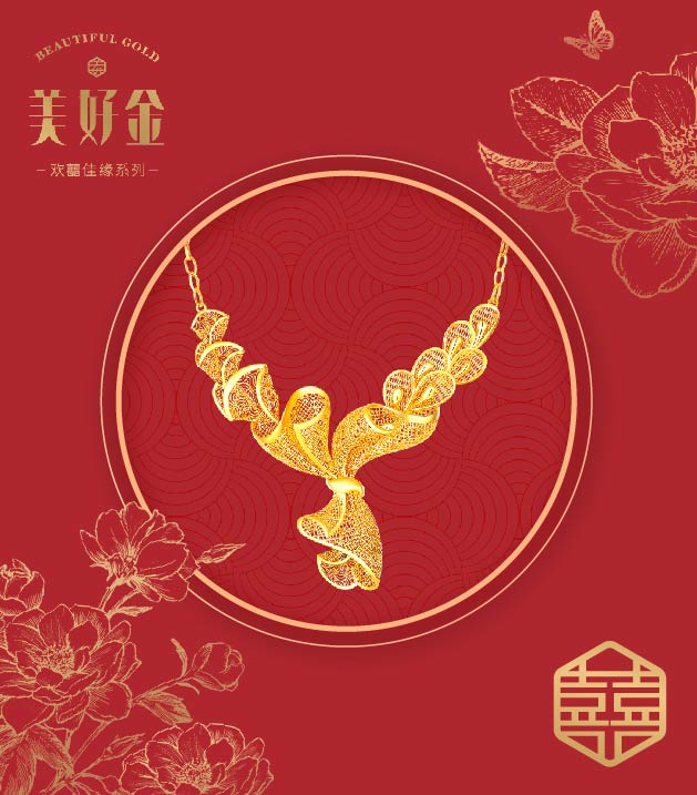 千百年来,中国人对爱情的美好向往从未停息。从"一生一世"的期许到"执手偕老"的誓言,中式爱情在恒久岁月中绽放光芒,至今令人向往。中国yabo"美好有喜"系列,精选牡丹、龙凤、并蒂莲等吉祥婚庆元素,以现代时尚之笔,绘就中式婚庆黨境,倾力打造全新时尚婚庆国潮黄金首饰系列。献礼新婚佳偶,诠释美好爱情真谛,为每一对眷侣添欢喜、缔佳缘。