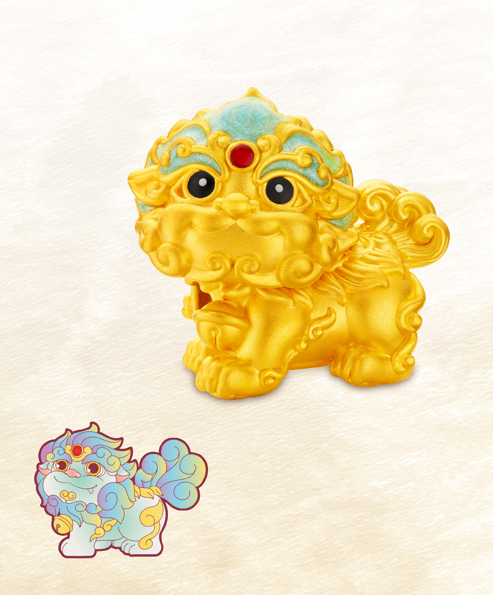 采用5D硬足金工艺,立体塑造威风凛凛的舞狮形象,它身披彩锦,眼似铜铃,灵动跳跃间,威风嘶吼,