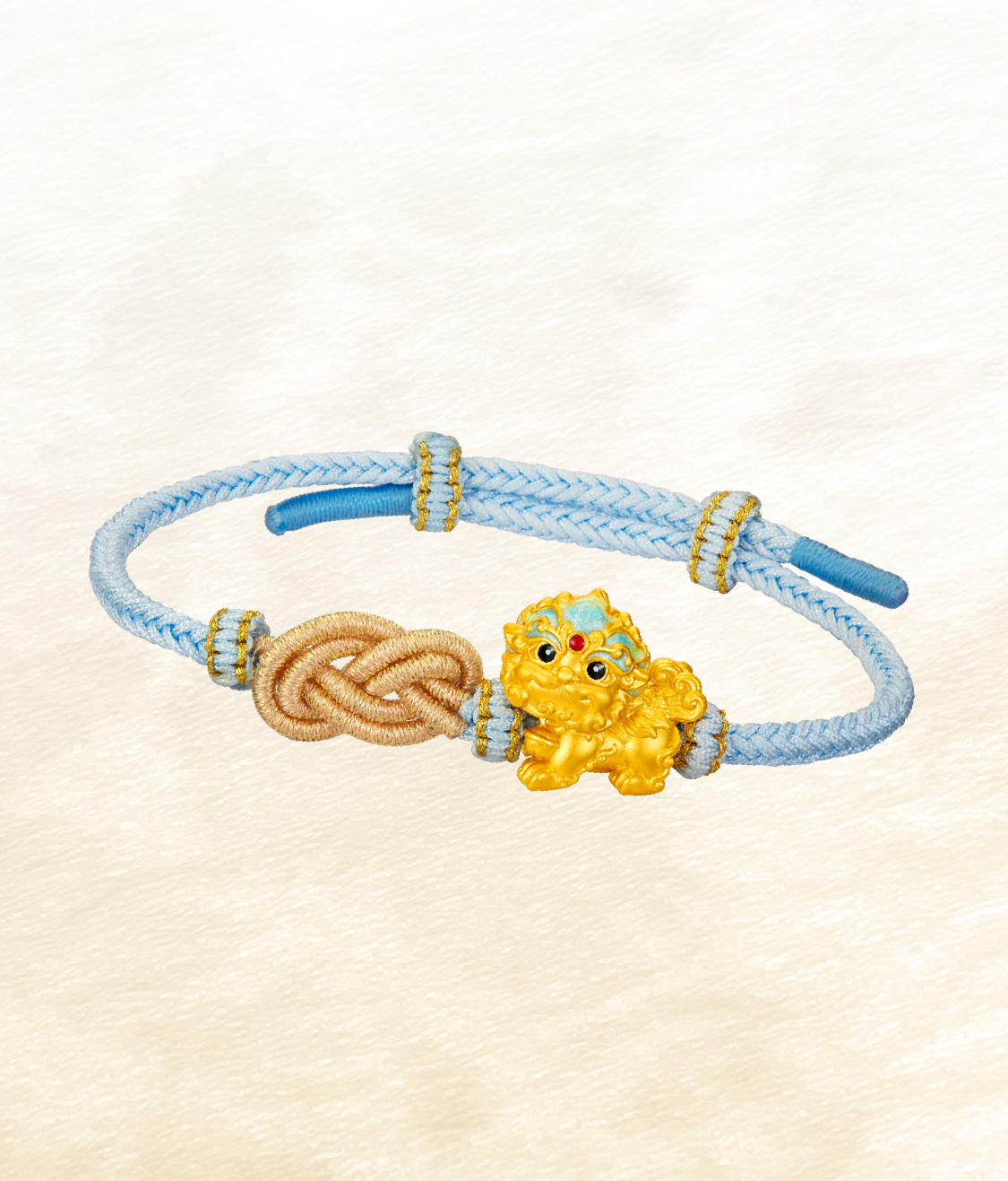 平步青云硬足金手绳灵感汲取自雄伟壮丽的大足石刻,将千年宝顶山的护法狮神韵化身为吉祥“守护神”
