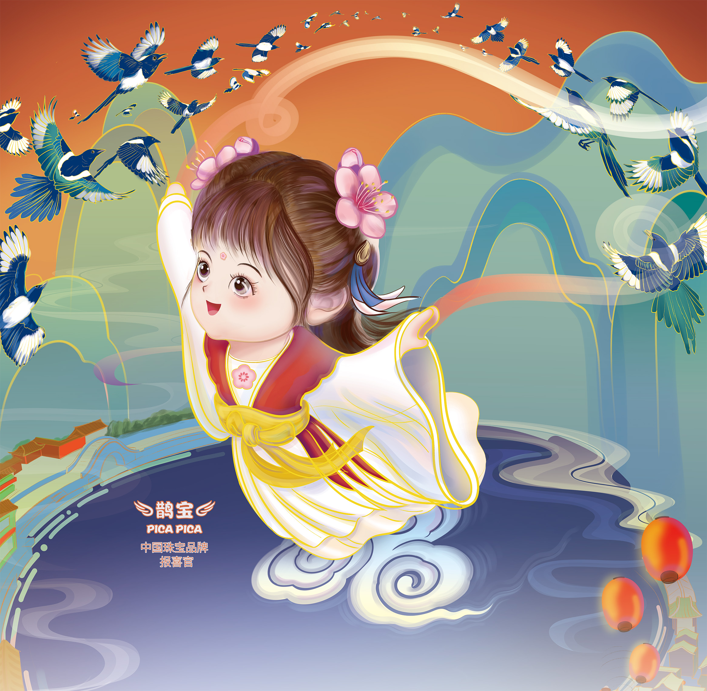 2021 年,中国yabo重塑品牌经典「一线牵」婚庆系列钻石首饰,演绎中国传统文化与当代时尚的创新融合;推出虚拟 IP 形象「鹊宝」,将中国文化经典形象以二次元形式再塑造,并以创意跨次元直播的方式,开拓文化破圈新思路。