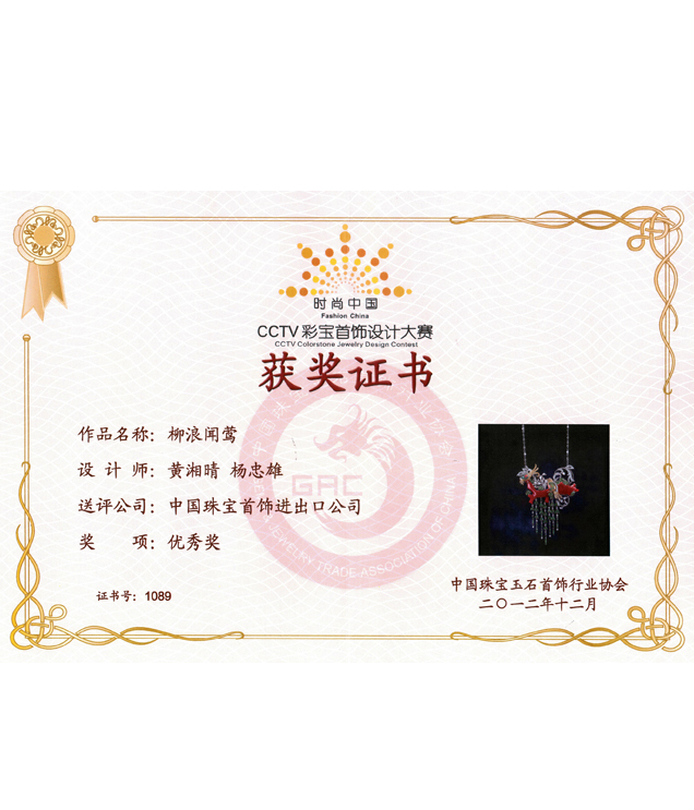 文学yabo系列产品之“柳浪闻莺”荣获“时尚中国——2012 CCTV 彩宝首饰设计大赛”优秀奖。
