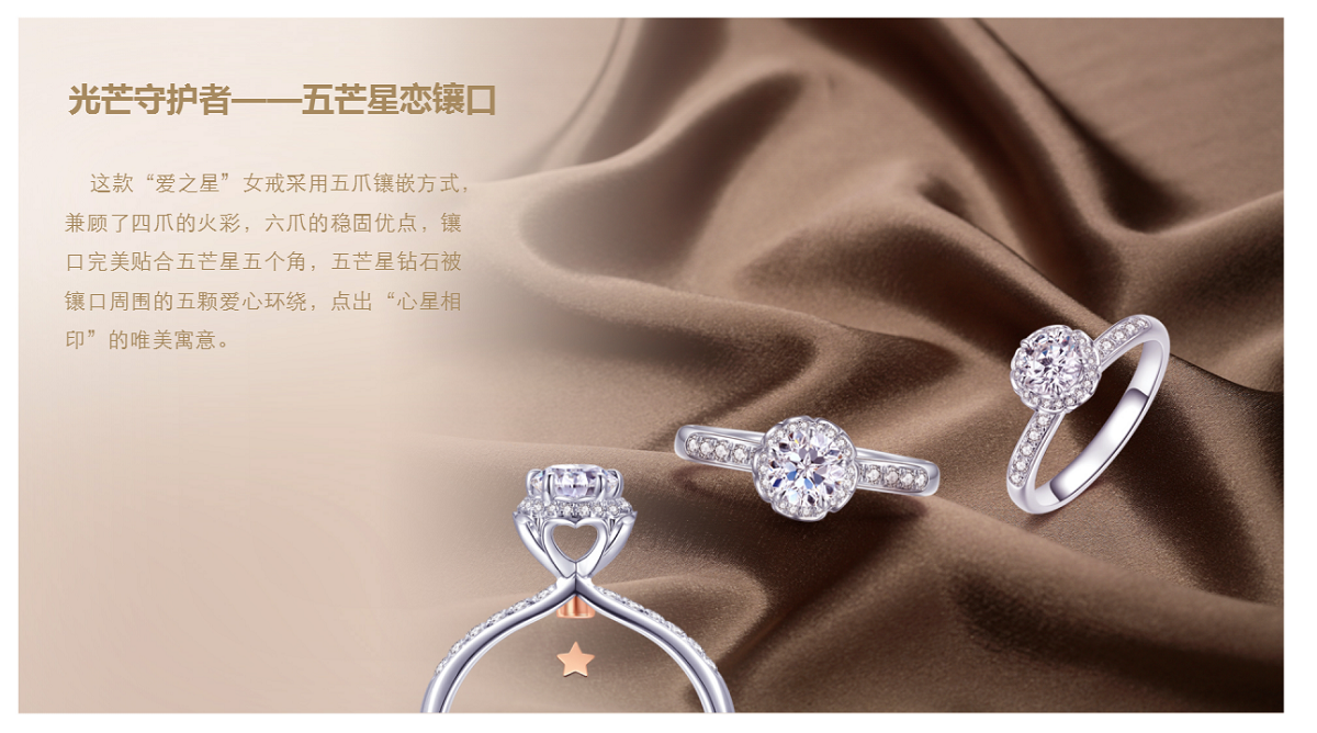 Love star高端婚庆系列钻饰,以五芒星为灵感来源,撷取其“守护爱情”的美好寓意,以“心印星,百分爱”为主题理念,独家引进比利时STELLA 100百面星形高端切割工艺,特邀著名yabo设计大师安东尼奥·密西亚家精心设计,只为打造高端婚庆钻饰典范。