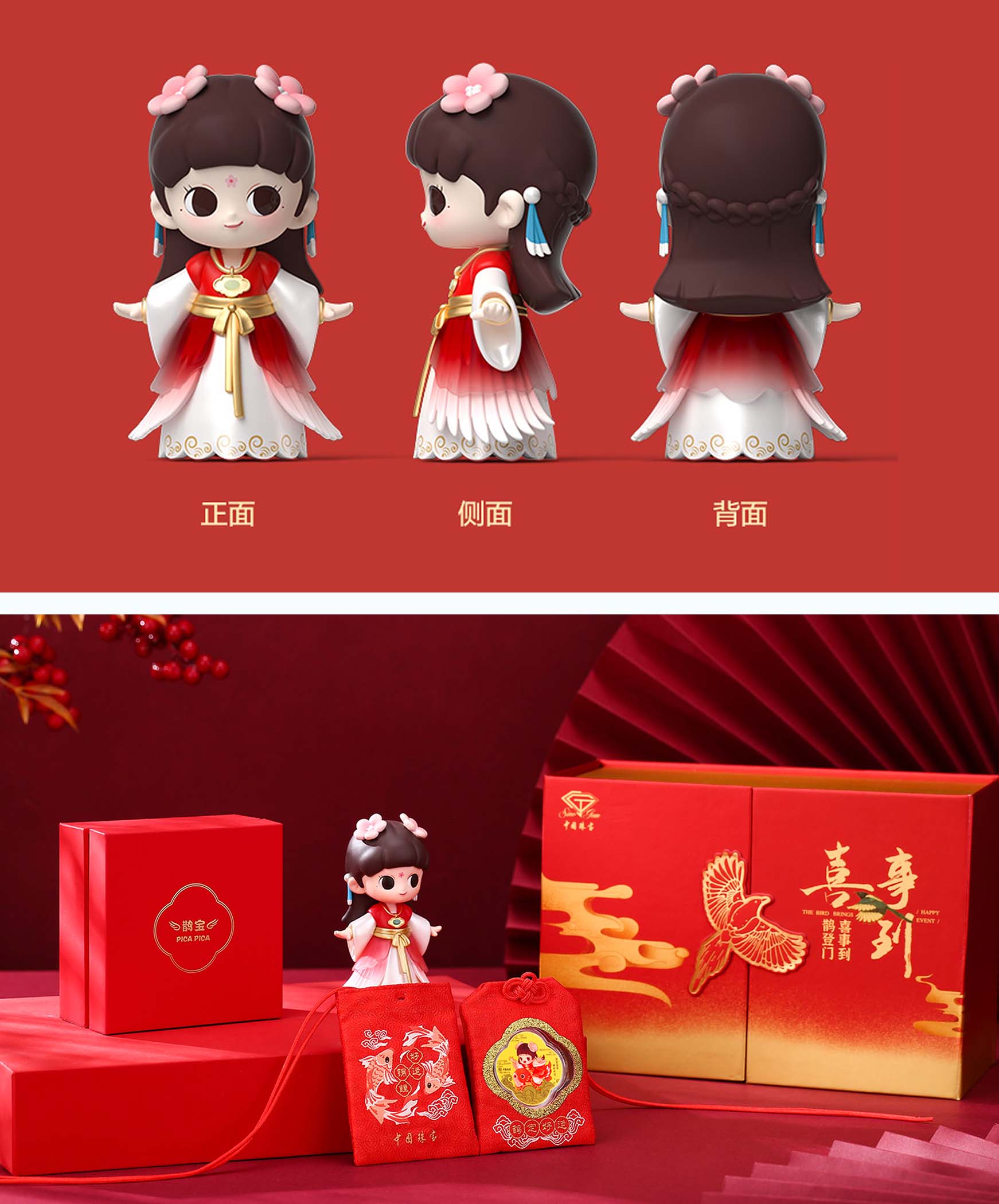 鹊宝IP系列提取祥瑞元素,以潮流趣味的设计打造黄金系列产品,为消费者报喜送福,带来吉祥好运、万事圆满的美好祝福。
